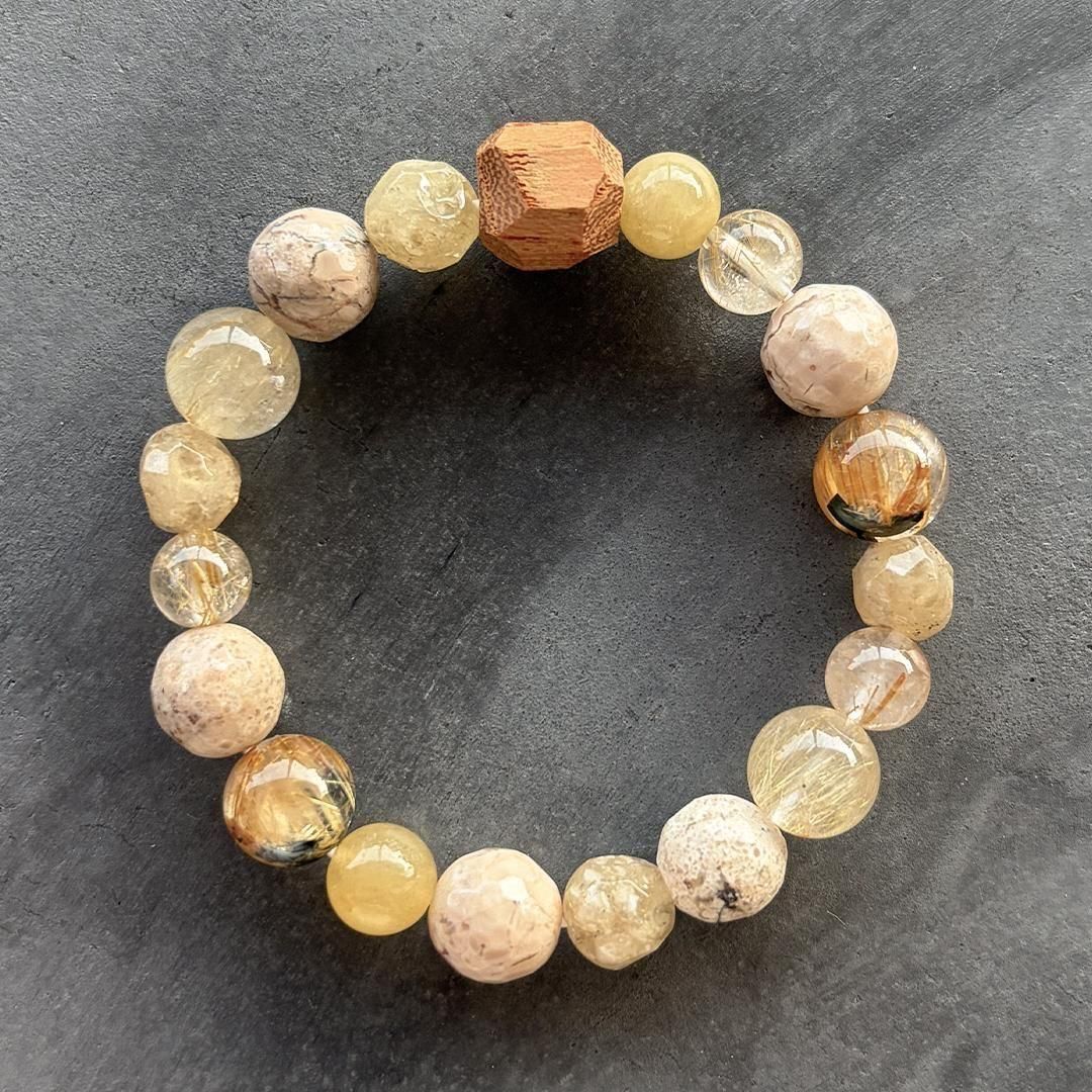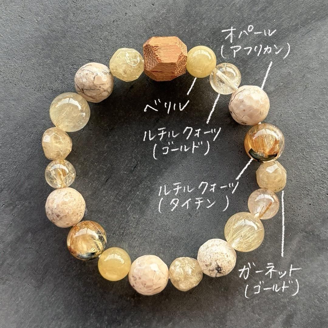 様々な種類のゴールドストーンを使った贅沢なブレス。