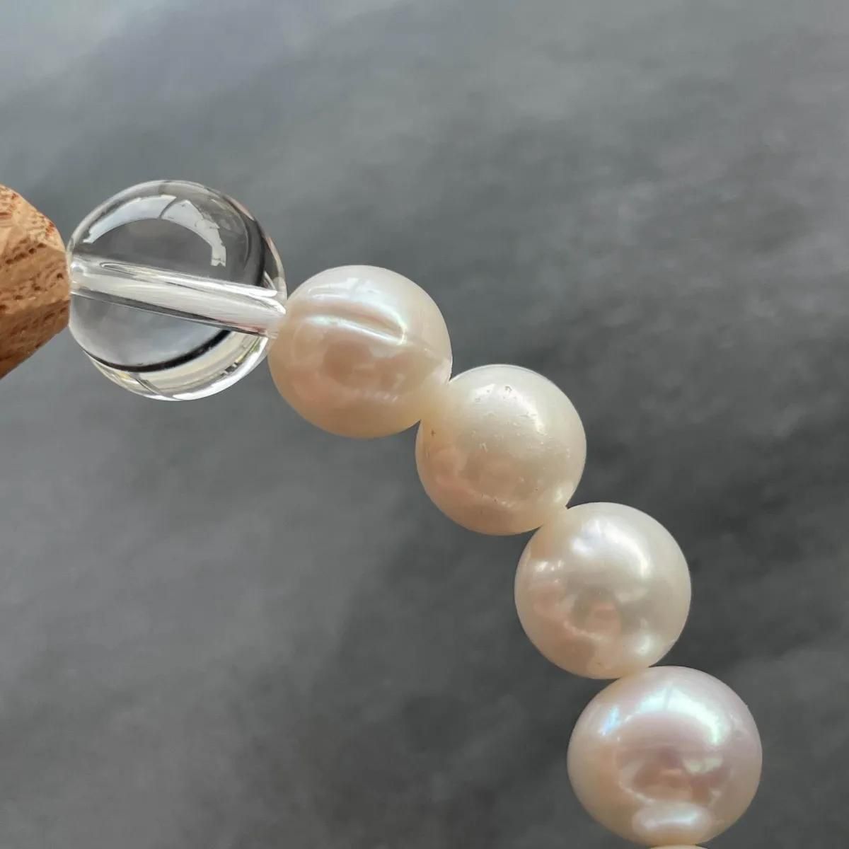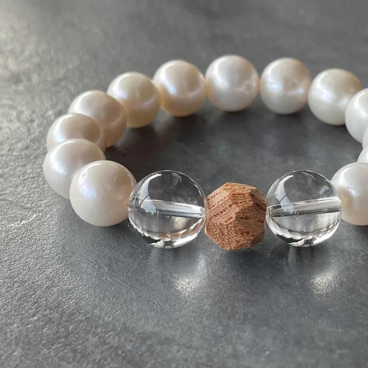 Pure Japanese style bracelet with sacred pearls and crystals.