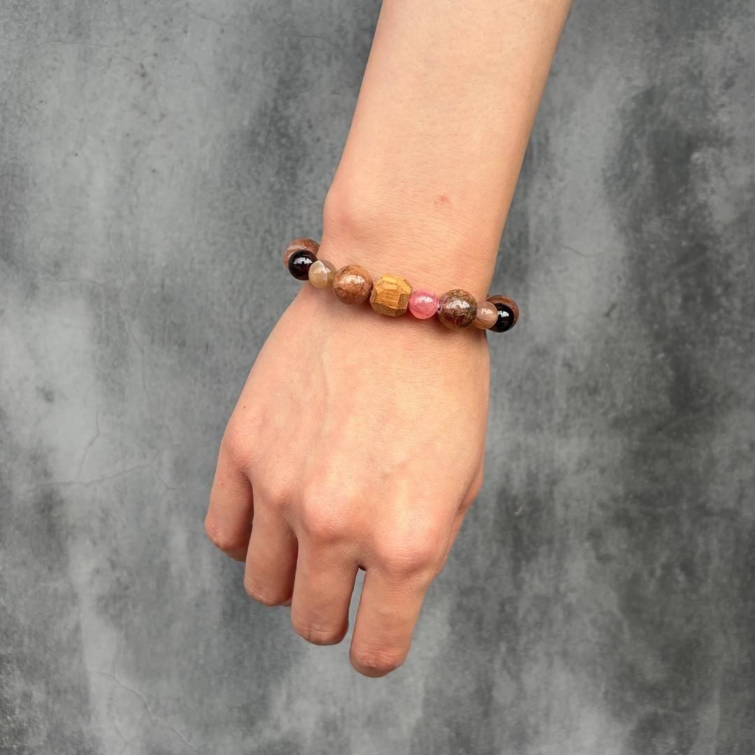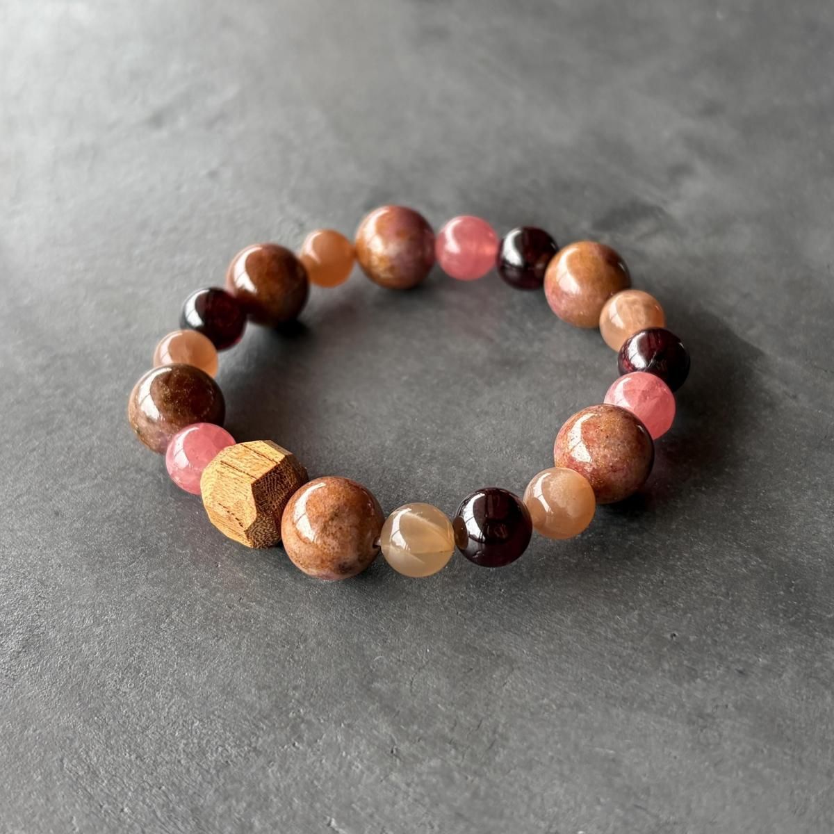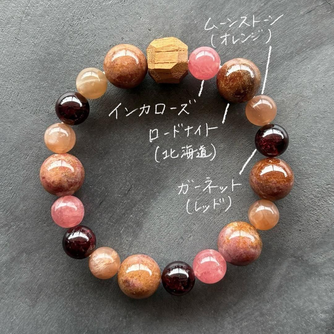 ベージュオレンジのムーンストーンやインカローズ、ガーネットと合わせて。