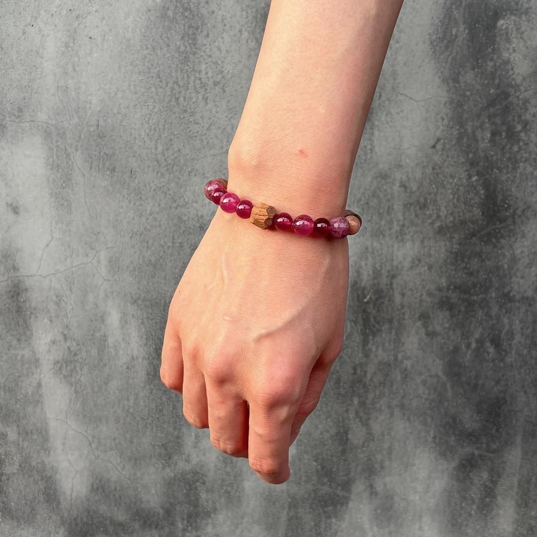 *このブレスは一部の珠の穴口が細いため、通常ひいらぎでお使いしておりますゴムより細めのゴムを4本取りで通しております。石の重みで切れる強度ではないことを確認しておりますが、やや繊細なため着脱の際は優しくお取り扱いください。